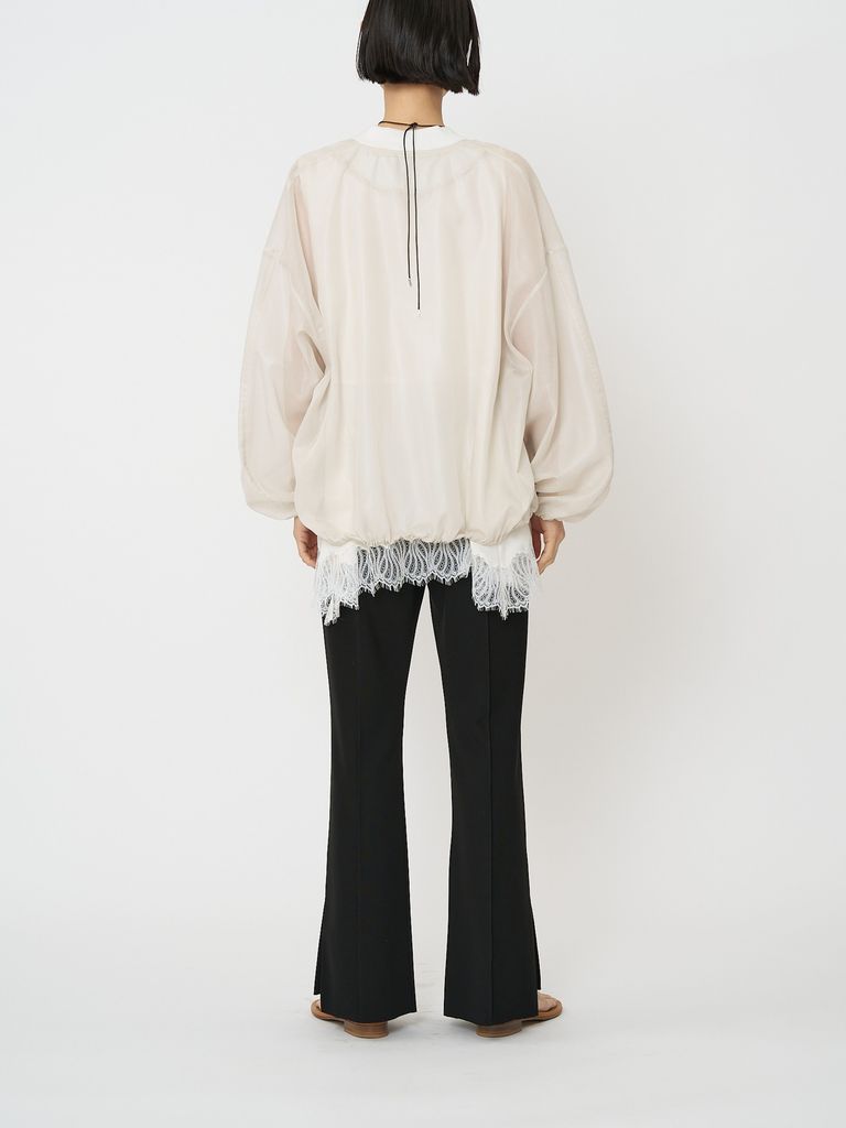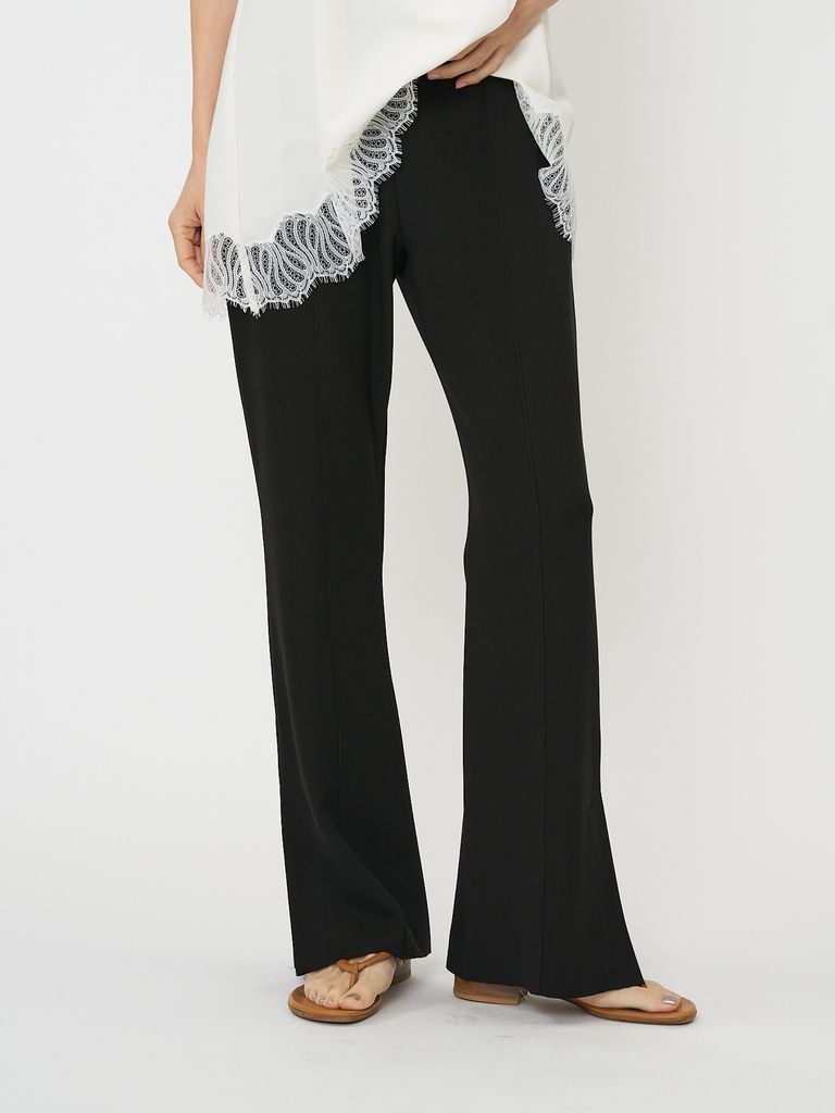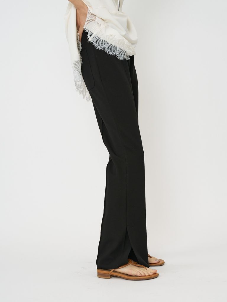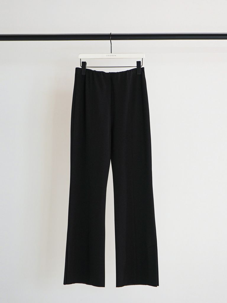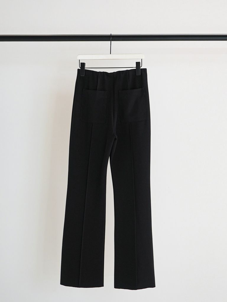 カジュアルな印象のあるリブなのに、美しい落ち感と程よい光沢感できれいめな表情が魅力です。シルエットは、脚長効果を最大限に引き出すフレアライン。裾のサイドベンツが歩くたびに軽快な抜け感をプラスします。ウエストはインゴム仕様でリラックスして着用でき、ヒップポケットのデザインが、スパッツ感なく普段使いしやすいルックスを確立します。履いていることを忘れるほど楽ちんな着心地と、どんなトップスにもマッチする万能性は、レイヤードスタイルから主役使いまで幅広く対応でいる万能パンツです。