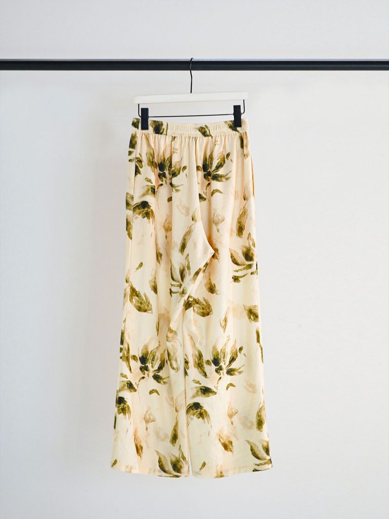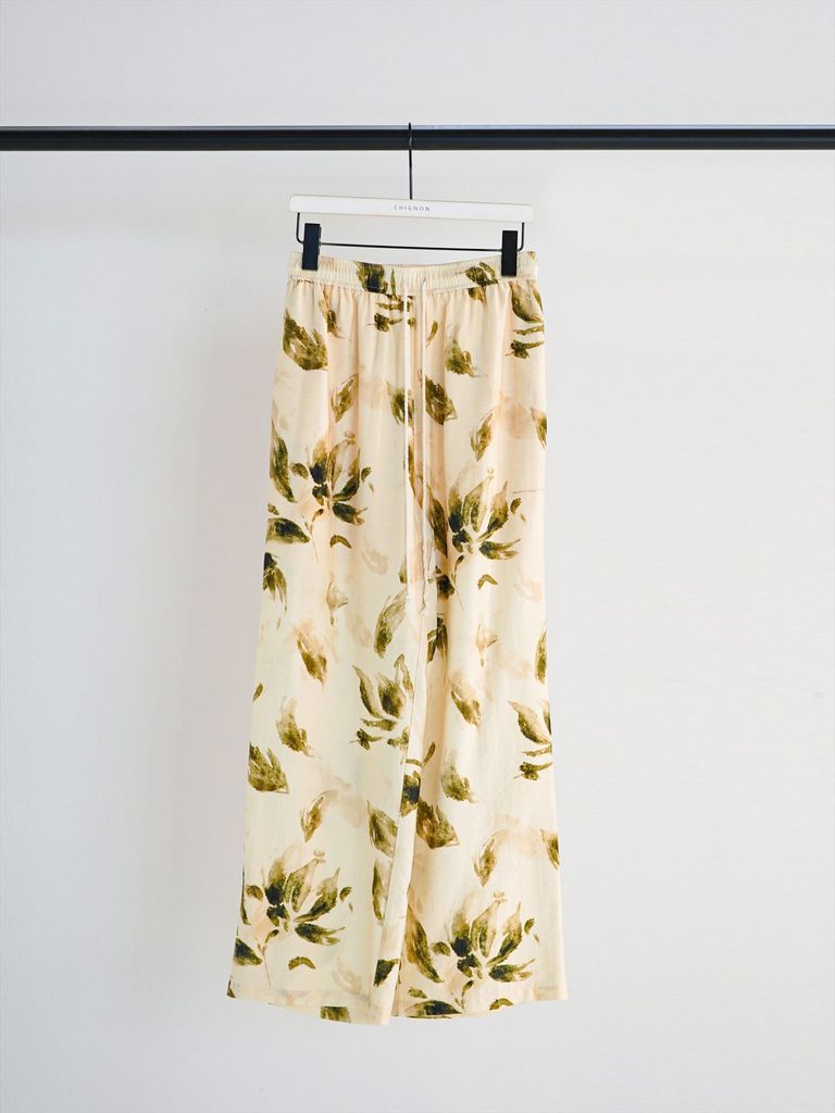 存在感のあるフラワー柄が目を引く、リラックス感たっぷりのイージーパンツ。