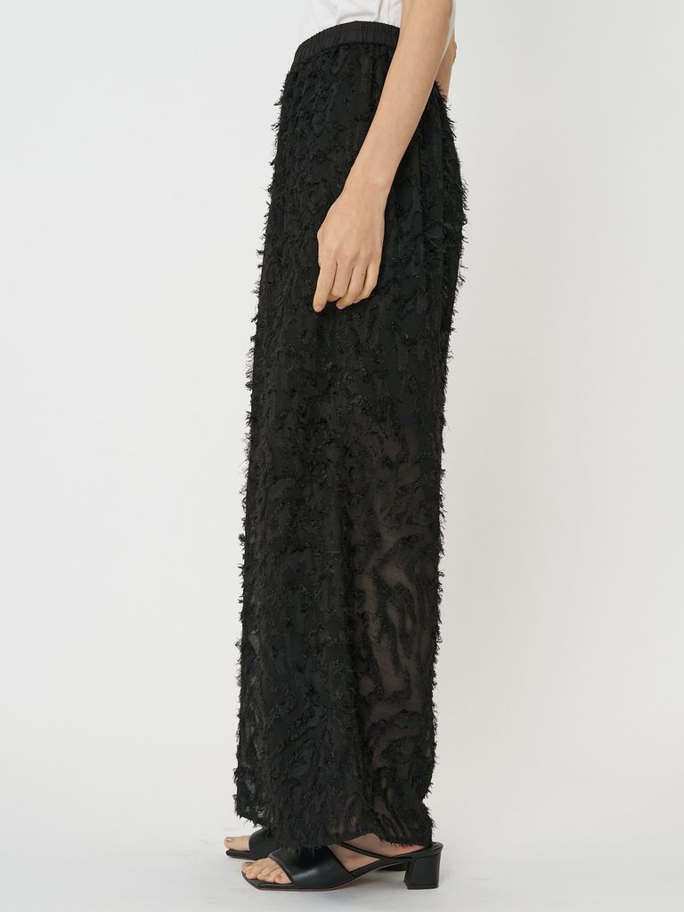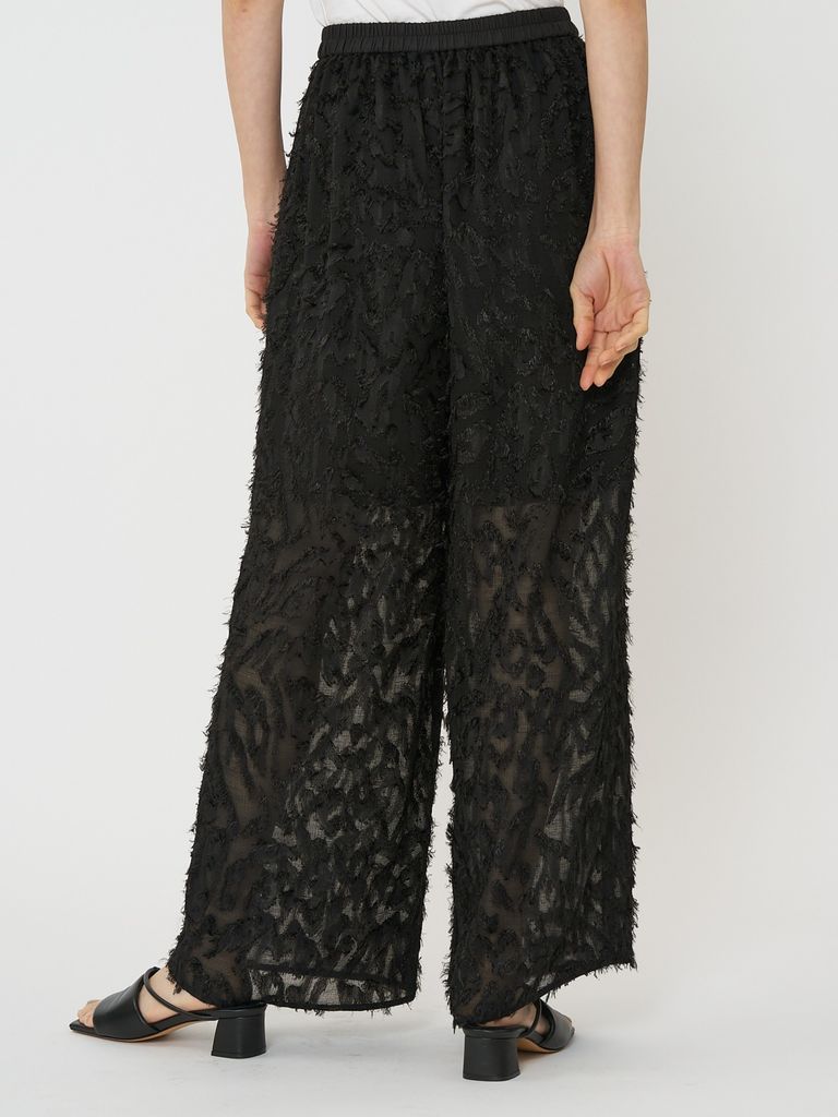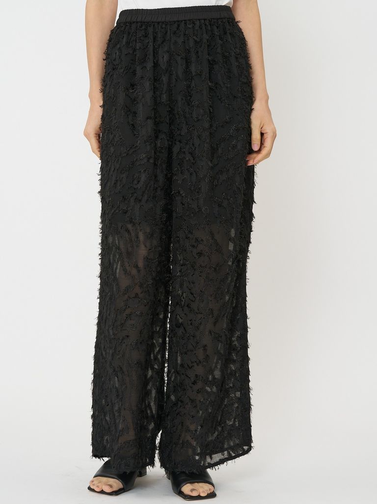 メッシュ素材にカットジャガードがドッキングされた目新しい素材を使用したイージーワイドパンツです。