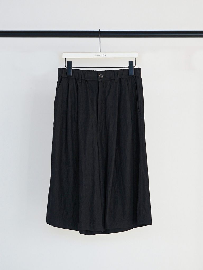 なめらかなとろみ感が心地良いシャンブレーのレーヨンナイロン素材を使用したキュロット。