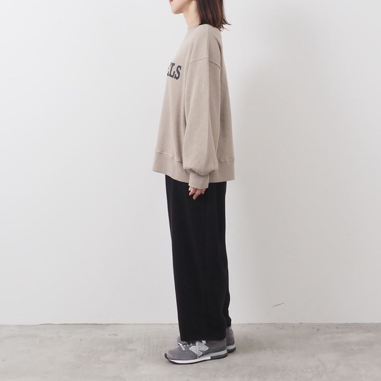フロントのロゴプリントが特徴のトップス。コットンのワッフルニットでストレッチも効いているので着心地が抜群です。カジュアルなアイテムなのでデニムやチノパンと相性が◎ 自宅で手洗い可能です。