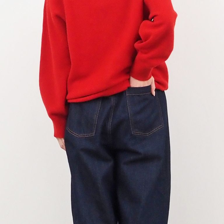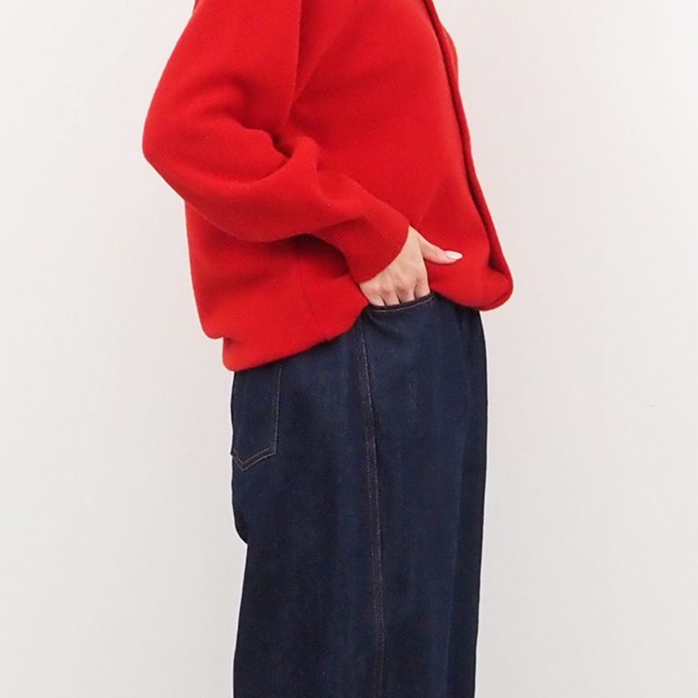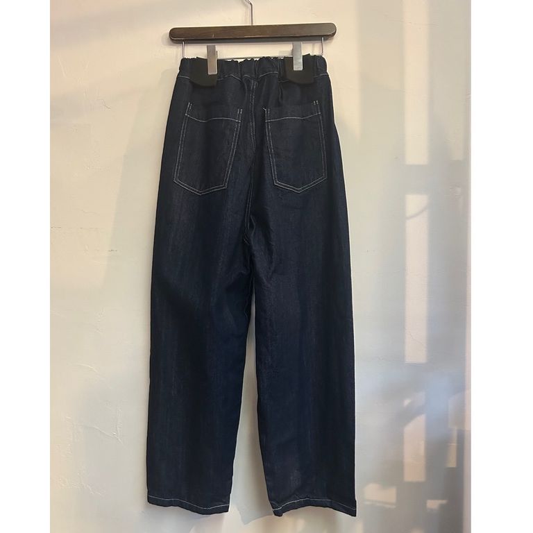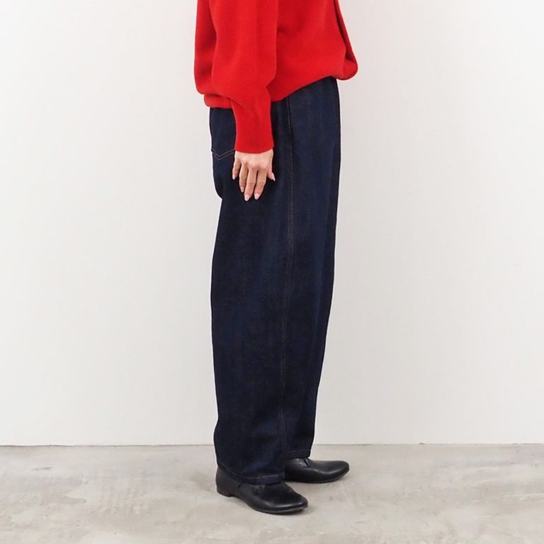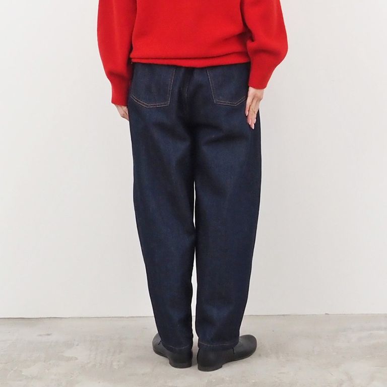 柔らかくゆったりとしたシルエットのデニムパンツです。ウエストは太めのゴム&内紐仕様で、楽な履き心地です。体のラインを拾わないので気にならずリラックスしたコーデになります。1年を通して履きやすいのも魅力的です。