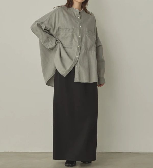 6ozテンセルデニムオーバーシャツ グレー