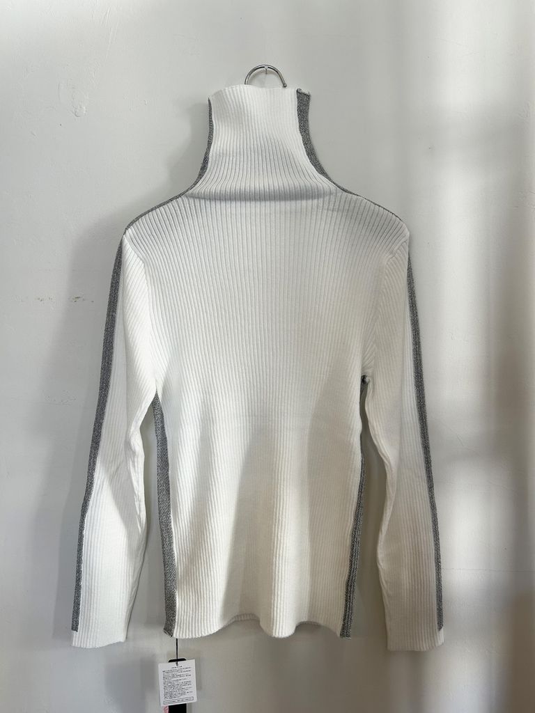 サイドラメラインタートルニット オフホワイト