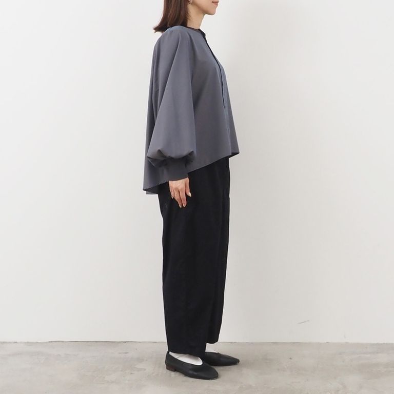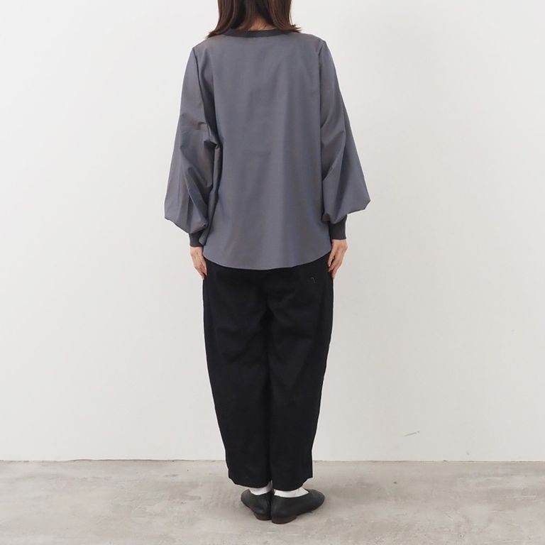 体のラインを拾わないゆったり感と、丸みのあるボリューム袖。着るだけで自然と女性らしい空気感をまとえます。落ち着きのある色合いは、どんなコーデにもなじみながら女性らしい柔らかさをプラス。シーズンレスで楽しめる万能カラーです。袖口のリブが、ふんわり袖をすっきりまとめて手首をきれいに魅せてくれるデザイン。さりげないメリハリが、全体のシルエットを美しく引き立てます。ポリエステルの扱いやすさとレーヨンのなめらかさをあわせ持つ生地。毛羽が少なく、ほんのり艶のあるクリアな表面感が、シンプルなデザインに奥行きを与えてくれます。さらりとしたタッチで、一日中心地よく。