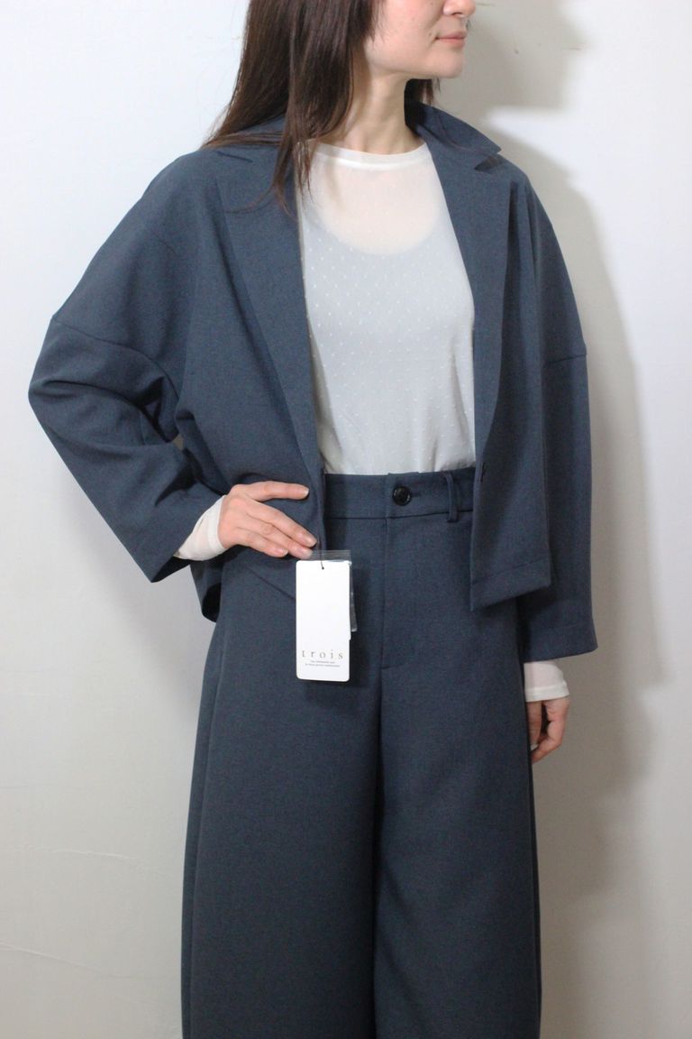 新入荷 残りわずか trois ドライトロピカルショートジャケット ネイビー ¥23,100 税込 210 ポイント還元 発送目安日:1–2営業日 この商品は 送料無料 でお届けします 注文 サイズ(採寸)情報 質問する お気に入り コーディネートをリクエストする お電話でもご注文いただけます!お電話の際は 商品番号:2756 をお知らせください。 電話をかける 0835-22-9378 サイズ 裄丈 身幅 総丈 裾幅 FREE 75.5 55 57 60 単位:cm 商品説明 軽やかに羽織れるドライタッチのショートジャケット。ミニマルなデザインに仕上げつつ、程よく丸みを持たせたシルエットが女性らしさを演出します。前を留めても開けてもバランスが取りやすく、カーディガン感覚で着用できるのも魅力です。同素材のボトムと合わせたセットアップスタイルはもちろん、単品使いでも着回し力の高い一着。ゆるっとしたシルエットでメンズライクな雰囲気もありつつ、こなれた着こなしを演出します。同生地のドライトロピカルバレルパンツとセットアップで着用可能です。<生地感>ざっくりとしたナチュラルなルックスでシワになりにくく毛羽も出にくいドライトロピカル生地。<洗濯方法>手洗い可 詳細情報 カラー ネイビー 素材 ポリエステル 100% ブランド trois 品番 T261-83010nvy カテゴリ ジャケット・アウター > テーラードジャケット 性別 女性 着用モデル情報 164cm、着用サイズ:FREE 返品 返品可能条件はこちら ラッピング 不可 発送目安日 1–2営業日 配送方法 佐川急便(送料について) お支払い方法 本商品でご利用可能な決済方法は下記となります。各お支払い方法についての詳細はショッピングガイドをご覧ください クレジットカード決済 セキュリティコードとはクレジットカード裏面のサイン欄上部に記載されている数字の一番右の3桁の数字です。アメリカン・エキスプレス・カード提携のクレジットカードの場合、セキュリティコードはクレジットカード表面に記載されている4桁の数字となります。 楽天ペイ 代金引換 銀行振込 サイズ(採寸)情報 サイズ 裄丈 身幅 総丈 裾幅 FREE 75.5 55 57 60 単位:cm このアイテムをシェア この商品について質問する