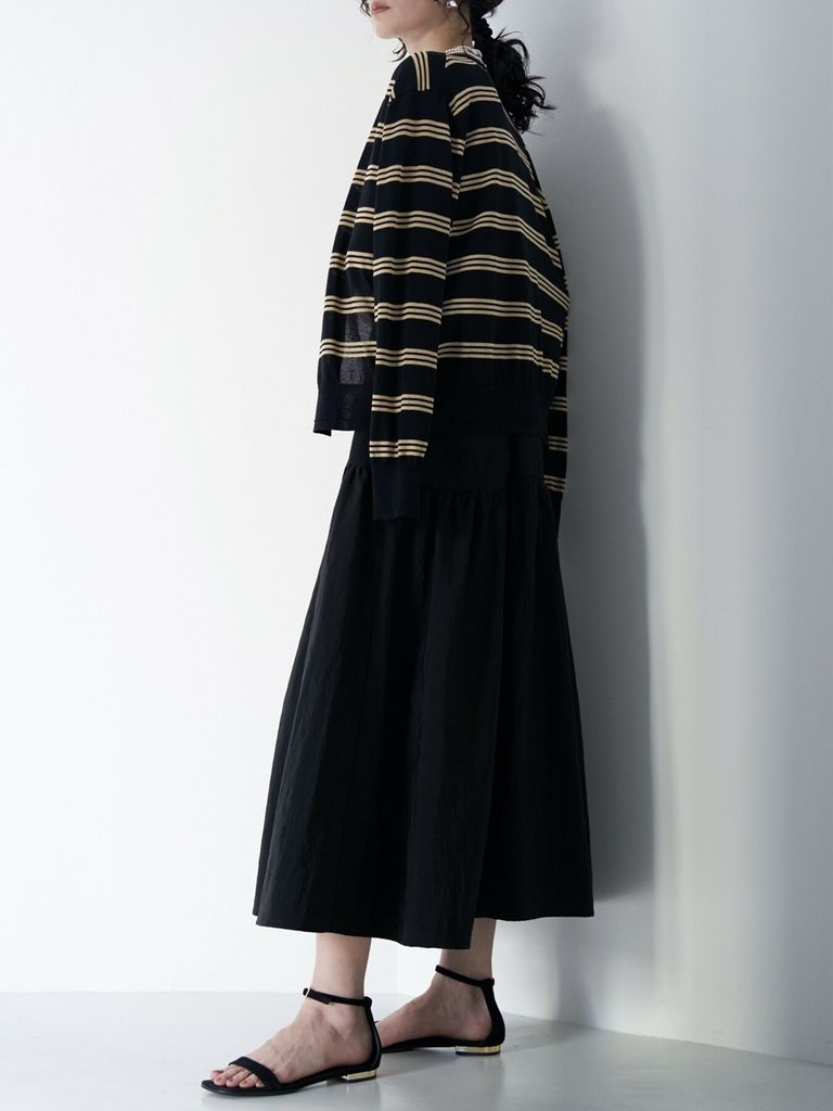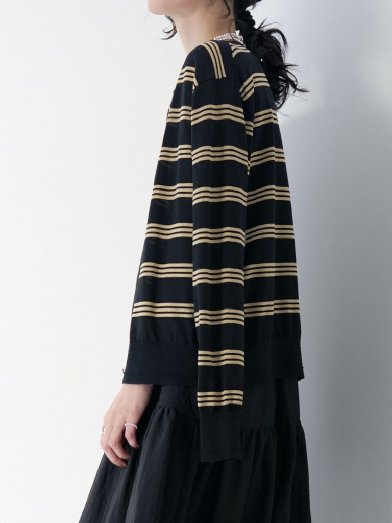 予約商品 CHIGNON [9263-694GS] ミニマルクルーネックCDトップス ブラックミックス ¥19,580 税込 178 ポイント還元 入荷予定時期:2026年06月上旬 この商品は 送料無料 でお届けします 注文 サイズ(採寸)情報 質問する お気に入り コーディネートをリクエストする お電話でもご注文いただけます!お電話の際は 商品番号:2818 をお知らせください。 電話をかける 0835-22-9378 サイズ 肩幅 袖丈 身幅 着丈 FREE 40 58 52 58 単位:cm 商品説明 16ゲージで丁寧に編み立てた、クリーンなクルーネックカーディガン。程よくゆとりのあるサイズ感で、羽織りとしてもプルオーバーとしてもアレンジ自在。袖口と裾には、細かなMIXリブをデザインしてポイントにしています。シーズンレスで楽しめる肌触りの良いコットンナイロン素材。さらりとしたドライなタッチは肌離れ良く、暑さの残る季節の変わり目にも重宝します。奥行きのあるミックスグレーとブラックの無地2色には、衿ぐり内側に配色部分を。(グレー:ブラック配色・ブラック:ベージュ配色)リズミカルな細ピッチボーダー2色は、スタイリングのアクセントにもおすすめ。ボタンと後ろ衿ぐりに配したCHIGNONプレートのゴールドが全体を引き締めています。上質な仕上がりのハイゲージニットはONスタイルにも活躍。トップスとしてはもちろん、肩や腰に巻くなど、アレンジも楽しめます。共糸で展開しているランダムリブニットタンク(9263-695GS)とのアンサンブルがおすすめ。無地とボーダーはベースカラーが共通なので、無地と柄とでアンサンブル着用も可能です。【取り扱い方法】手洗い 詳細情報 カラー ブラックミックス 素材 綿:65% / ナイロン:35% ブランド CHIGNON 品番 9263-694GSblkmix カテゴリ トップス > カーディガン 性別 女性 着用モデル情報 着用サイズ:FREE 返品 返品可能条件はこちら ラッピング 不可 入荷予定時期 2026年06月上旬 配送方法 佐川急便(送料について) お支払い方法 本商品でご利用可能な決済方法は下記となります。各お支払い方法についての詳細はショッピングガイドをご覧ください クレジットカード決済 セキュリティコードとはクレジットカード裏面のサイン欄上部に記載されている数字の一番右の3桁の数字です。アメリカン・エキスプレス・カード提携のクレジットカードの場合、セキュリティコードはクレジットカード表面に記載されている4桁の数字となります。 楽天ペイ 銀行振込 サイズ(採寸)情報 サイズ 肩幅 袖丈 身幅 着丈 FREE 40 58 52 58 単位:cm このアイテムをシェア この商品について質問する