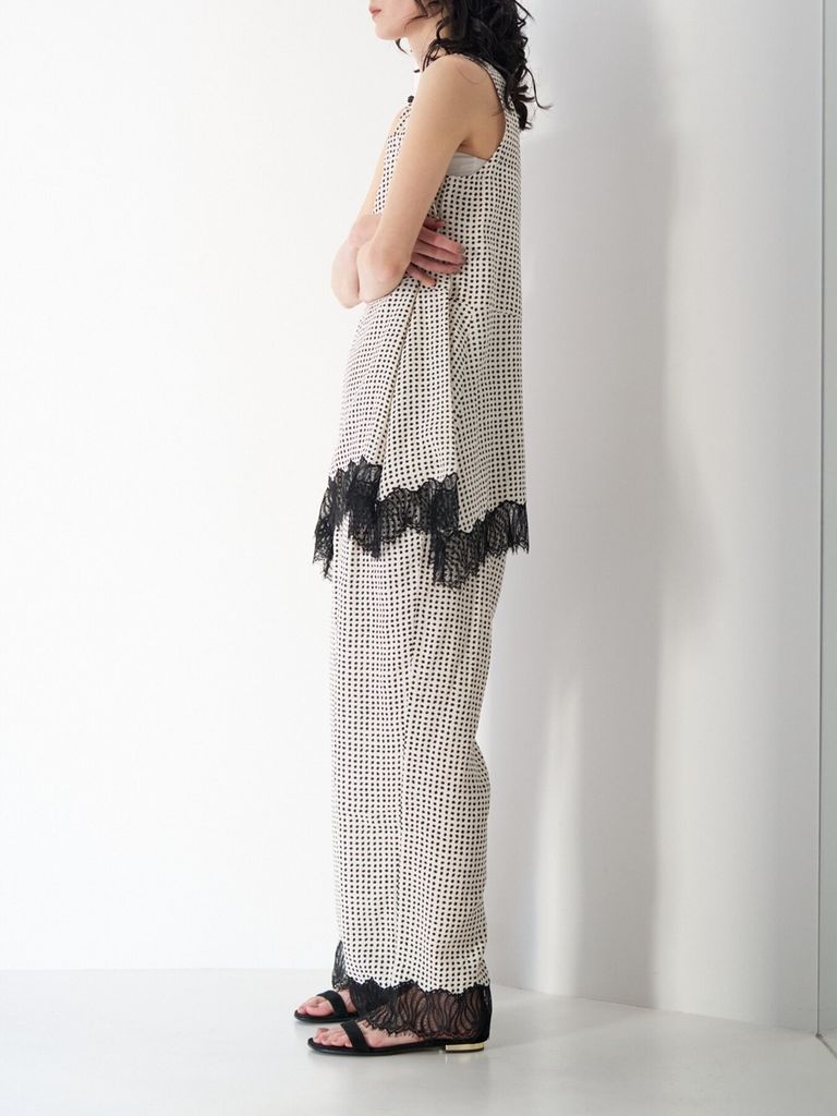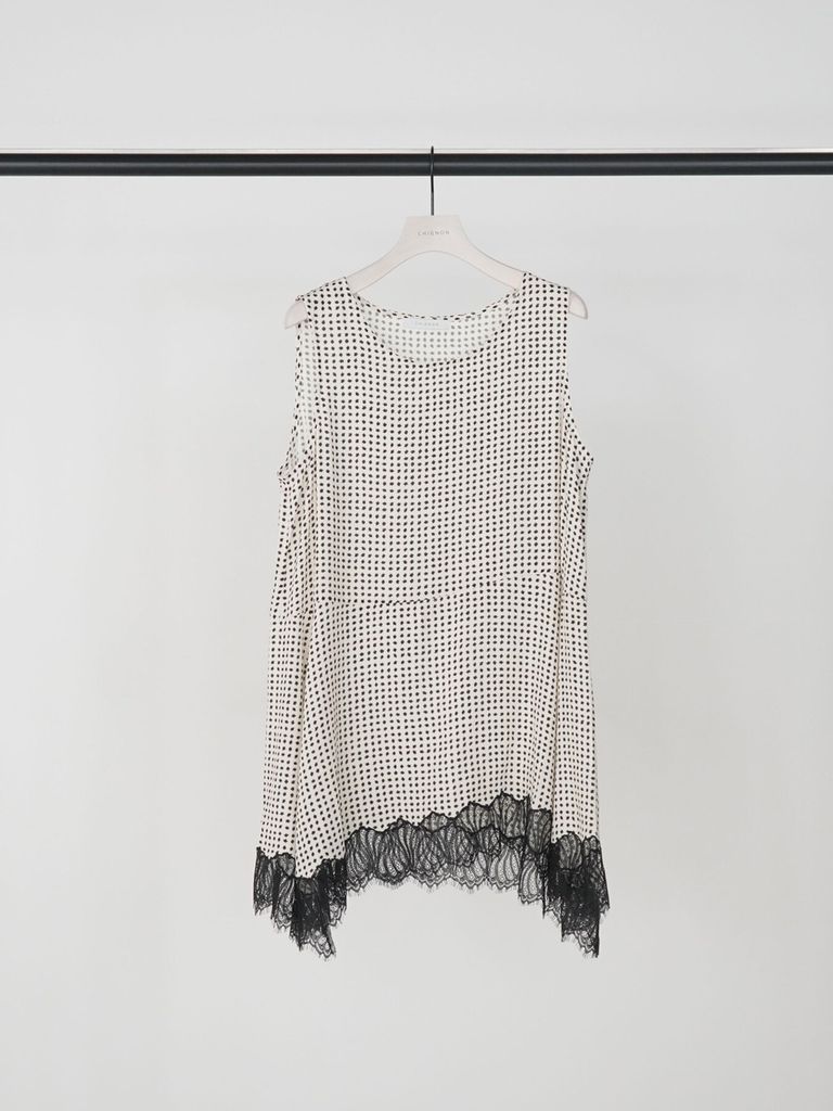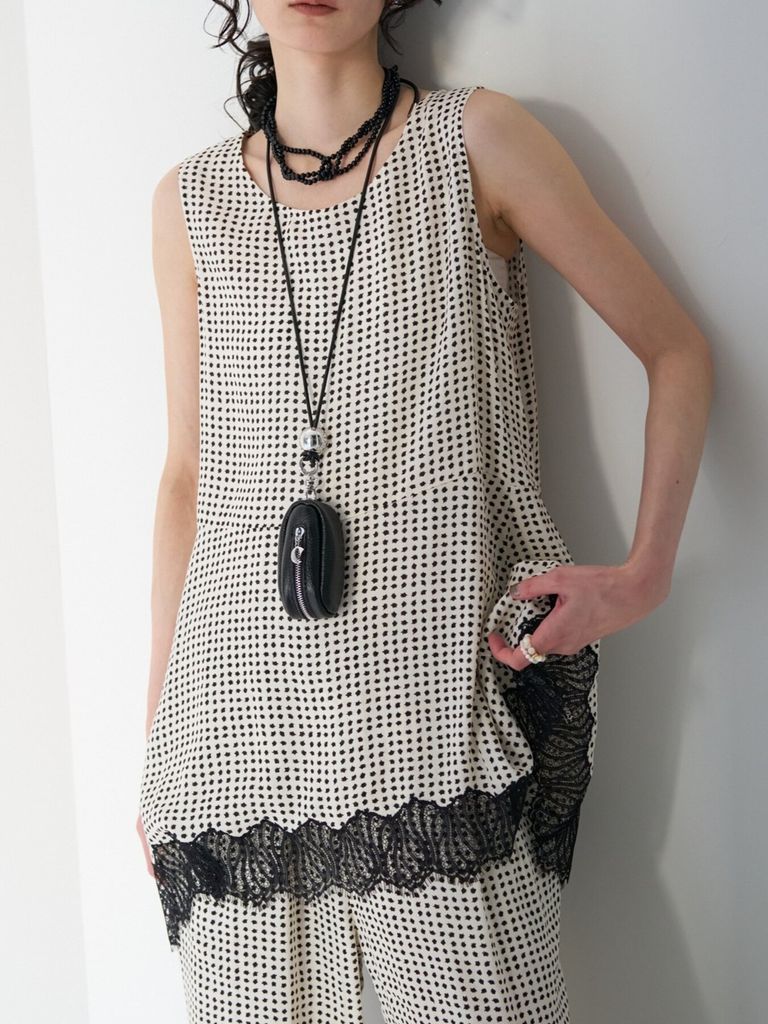 予約商品 CHIGNON [1563-683NH] レーストリムドットタンクTOP ブラック ¥16,280 税込 148 ポイント還元 入荷予定時期:2026年06月上旬 この商品は 送料無料 でお届けします 注文 サイズ(採寸)情報 質問する お気に入り コーディネートをリクエストする お電話でもご注文いただけます!お電話の際は 商品番号:2836 をお知らせください。 電話をかける 0835-22-9378 サイズ 身幅 肩幅 着丈 FREE 49 35 74 単位:cm 商品説明 小粒の変形ドット柄に繊細なレースヘムを組み合わせたノースリーブトップス。ミニマルな柄のリズムにレースの透け感が重なり、シンプルながら奥行きのある表情に仕上げています。身体のラインを拾いにくいストレートシルエットとヒップにかかる丈感で、リラックスした着心地とバランスの取りやすさを両立。裾のシルエットも華やかさを出す為、ハンカチーフヘムにして裾にたっぷりとフレア感を出しました。デザイン性を盛り込んでいる為、単品で着ても様になり、レイヤードしても存在感があります。同素材パンツ[3563-684NH] レース刺繍ドット柄イージPTとのセットアップはもちろん、無地ボトム合わせでもスタイリングが完成する一枚です。※同型の素材違いで、サテン×レースの[1561-061-3NH] ヘムレースサテンタンクもございます。※着用画像はオフホワイトです。【取り扱い方法】手洗い可 詳細情報 カラー ブラック 素材 [本体] ポリエステル:100% [レース] ナイロン:100% ブランド CHIGNON 品番 1563-683NHblk カテゴリ トップス > ベスト 性別 女性 着用モデル情報 着用サイズ:FREE 返品 返品可能条件はこちら ラッピング 不可 入荷予定時期 2026年06月上旬 配送方法 佐川急便(送料について) お支払い方法 本商品でご利用可能な決済方法は下記となります。各お支払い方法についての詳細はショッピングガイドをご覧ください クレジットカード決済 セキュリティコードとはクレジットカード裏面のサイン欄上部に記載されている数字の一番右の3桁の数字です。アメリカン・エキスプレス・カード提携のクレジットカードの場合、セキュリティコードはクレジットカード表面に記載されている4桁の数字となります。 楽天ペイ 銀行振込 サイズ(採寸)情報 サイズ 身幅 肩幅 着丈 FREE 49 35 74 単位:cm このアイテムをシェア この商品について質問する