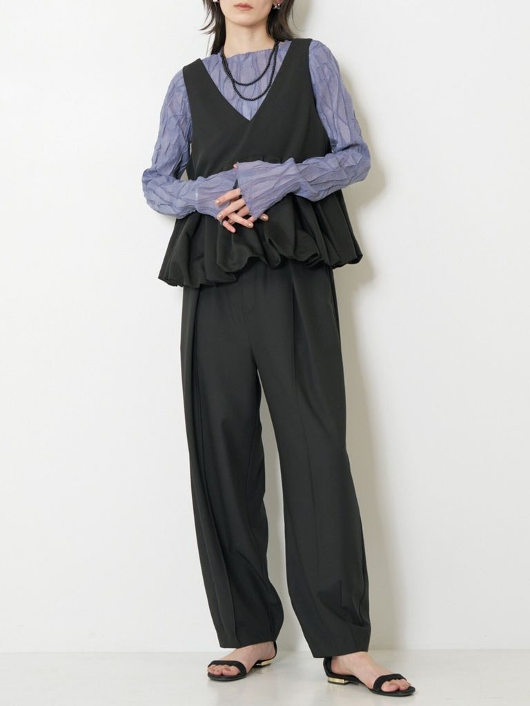 予約商品 CHIGNON [1263-624MK] 2WAYバルーンビスチェ ブラック ¥17,380 税込 158 ポイント還元 入荷予定時期:2026年06月上旬 この商品は 送料無料 でお届けします 注文 サイズ(採寸)情報 質問する お気に入り コーディネートをリクエストする お電話でもご注文いただけます!お電話の際は 商品番号:2906 をお知らせください。 電話をかける 0835-22-9378 サイズ 身幅 着丈 肩幅 FREE 51 56 31 単位:cm 商品説明 構築的なフォルムで魅せる、前後2WAYビスチェ。ミニマルなトップ部分からつながる、立体的でドラマティックなバルーンヘム。バルーン部分は光沢感のあるシアー素材を使用して軽さを出しています。深めのVネックでシャープに、ニュアンスUネックでやわらかく。スタイリングや合わせるインナーによって印象を自在に変えられる前後2WAY仕様。しなやかな落ち感ツイルがベースなので、甘くなりすぎず大人モードな仕上がりに。ボトムスとのバランスの取りやすい丈感で、特にセットアップのパンツ(3263-625MK)合わせは、より洗練された印象に。同素材のジレ(4263-623MK)も展開しています。TシャツやロンT、シャツとのレイヤードもおすすめ。シンプルなスタイリングに重ねるだけで、華やかな奥行きをプラスしてくれます。フェミニンでありながらエッジの効いた、今季らしいニュアンスビスチェです。【取り扱い方法】手洗い 詳細情報 カラー ブラック 素材 [本体] ポリエステル:94% / ポリウレタン:6% [別布] 再生繊維(セルロース):65% / ポリエステル:19% / ナイロン:16% ブランド CHIGNON 品番 1263-624MKblk カテゴリ トップス > ベスト 性別 女性 返品 返品可能条件はこちら ラッピング 不可 入荷予定時期 2026年06月上旬 配送方法 佐川急便(送料について) お支払い方法 本商品でご利用可能な決済方法は下記となります。各お支払い方法についての詳細はショッピングガイドをご覧ください クレジットカード決済 セキュリティコードとはクレジットカード裏面のサイン欄上部に記載されている数字の一番右の3桁の数字です。アメリカン・エキスプレス・カード提携のクレジットカードの場合、セキュリティコードはクレジットカード表面に記載されている4桁の数字となります。 楽天ペイ 銀行振込 サイズ(採寸)情報 サイズ 身幅 着丈 肩幅 FREE 51 56 31 単位:cm このアイテムをシェア この商品について質問する