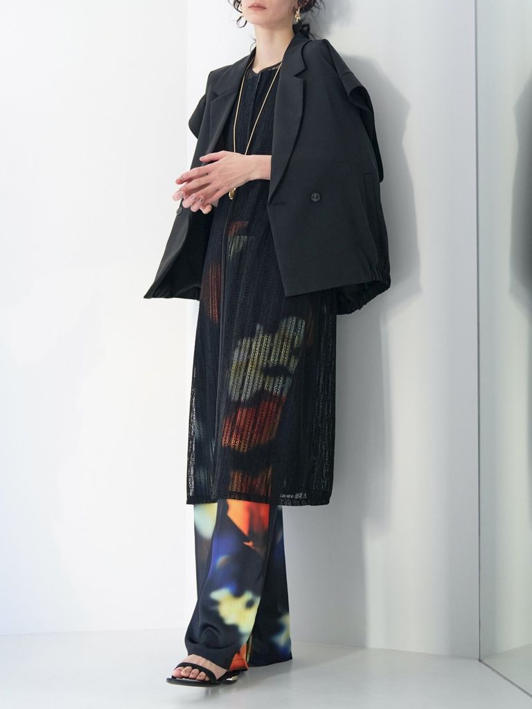 予約商品 CHIGNON [4263-623MK] オーバーフォルムダブルジレ ブラック ¥21,780 税込 198 ポイント還元 入荷予定時期:2026年06月上旬 この商品は 送料無料 でお届けします 注文 サイズ(採寸)情報 質問する お気に入り コーディネートをリクエストする お電話でもご注文いただけます!お電話の際は 商品番号:2908 をお知らせください。 電話をかける 0835-22-9378 サイズ 肩幅 袖丈 身幅 着丈 FREE 64 67 65 単位:cm 商品説明 テーラードのきちんと感とブルゾンライクな丸みを掛け合わせたニュアンスジレ。さらりとしなやかな落ち感素材で、動くたびに揺れる上品なドレープが魅力。シャープなラペルと、抜け感あるアームホールのバランスが絶妙。裾はゴム仕様にすることで、自然なブラウジングと立体的なフォルムに。構築的でありながら、女性らしい柔らかい印象に仕上げています。シワにもなりづらく、持ち運び時にも気を使わなくて良いのが嬉しいポイント。同素材のビスチェ(1263-624MK)、パンツ(3263-625MK)をご用意しています。ジレとビスチェ、ジレとパンツ、フルセットなど、気分に合わせてお好みのセットアップスタイルをお楽しみいただけます。Tシャツやカジュアルボトムと合わせるMIXスタイルもおすすめ。オンにもオフにもフィットする、着回し力の高い優秀ジレです。 詳細情報 カラー ブラック 素材 [本体] ポリエステル:94% / ポリウレタン:6% [別布] ポリエステル:80% / 綿:20% [別布2] 再生繊維(セルロース):65% / ポリエステル:19% / ナイロン:16% ブランド CHIGNON 品番 4263-623MKblk カテゴリ ジャケット・アウター > テーラードジャケット 性別 女性 着用モデル情報 着用サイズ:FREE 返品 返品可能条件はこちら ラッピング 不可 入荷予定時期 2026年06月上旬 配送方法 佐川急便(送料について) お支払い方法 本商品でご利用可能な決済方法は下記となります。各お支払い方法についての詳細はショッピングガイドをご覧ください クレジットカード決済 セキュリティコードとはクレジットカード裏面のサイン欄上部に記載されている数字の一番右の3桁の数字です。アメリカン・エキスプレス・カード提携のクレジットカードの場合、セキュリティコードはクレジットカード表面に記載されている4桁の数字となります。 楽天ペイ 銀行振込 サイズ(採寸)情報 サイズ 肩幅 袖丈 身幅 着丈 FREE 64 67 65 単位:cm このアイテムをシェア この商品について質問する