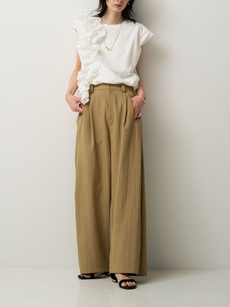 予約商品 CHIGNON [8563-609KK] ブルームフリルTEE ベージュ ¥15,180 税込 138 ポイント還元 入荷予定時期:2026年06月上旬 この商品は 送料無料 でお届けします 注文 サイズ(採寸)情報 質問する お気に入り コーディネートをリクエストする お電話でもご注文いただけます!お電話の際は 商品番号:2920 をお知らせください。 電話をかける 0835-22-9378 サイズ 肩幅 袖丈 身幅 着丈 FREE 54 58 65 単位:cm 商品説明 立体的なフリルを大胆にあしらったアシンメトリーデザインのフレンチTシャツ。片側に流れるように重ねたフリルが、シンプルな身頃に奥行きと動きを生み出し、着るだけでスタイリングの主役になる一枚です。身頃は透けにくいカットソー素材でカジュアル感をプラス。フリル部分は張り感のある布帛生地を使用して、フリルの立体感を出しました。インした際にフリルが邪魔にならないように、部分的にふらしにしているもの細やかなデザインポイントです。コンパクトな肩まわりとフレンチスリーブラインで甘さを抑え、モードなバランスに仕上げています。パンツ合わせでシャープに、スカート合わせでフェミニンにも着こなせるアイテムです。※着用画像はオフホワイトです。【取り扱い方法】手洗い可 詳細情報 カラー ベージュ 素材 [本体] 綿:100% [別布] ポリエステル:82% / 綿:18% ブランド CHIGNON 品番 8563-609KKbeg カテゴリ トップス > Tシャツ・カットソー 性別 女性 着用モデル情報 着用サイズ:FREE 返品 返品可能条件はこちら ラッピング 不可 入荷予定時期 2026年06月上旬 配送方法 佐川急便(送料について) お支払い方法 本商品でご利用可能な決済方法は下記となります。各お支払い方法についての詳細はショッピングガイドをご覧ください クレジットカード決済 セキュリティコードとはクレジットカード裏面のサイン欄上部に記載されている数字の一番右の3桁の数字です。アメリカン・エキスプレス・カード提携のクレジットカードの場合、セキュリティコードはクレジットカード表面に記載されている4桁の数字となります。 楽天ペイ 銀行振込 サイズ(採寸)情報 サイズ 肩幅 袖丈 身幅 着丈 FREE 54 58 65 単位:cm このアイテムをシェア この商品について質問する