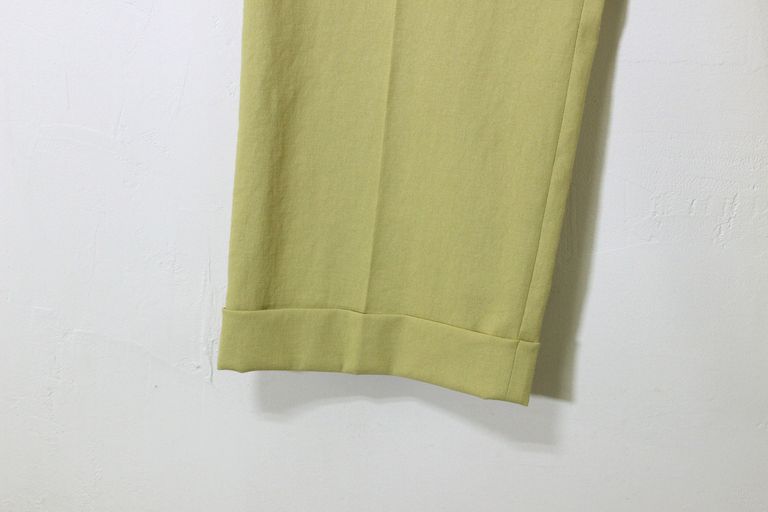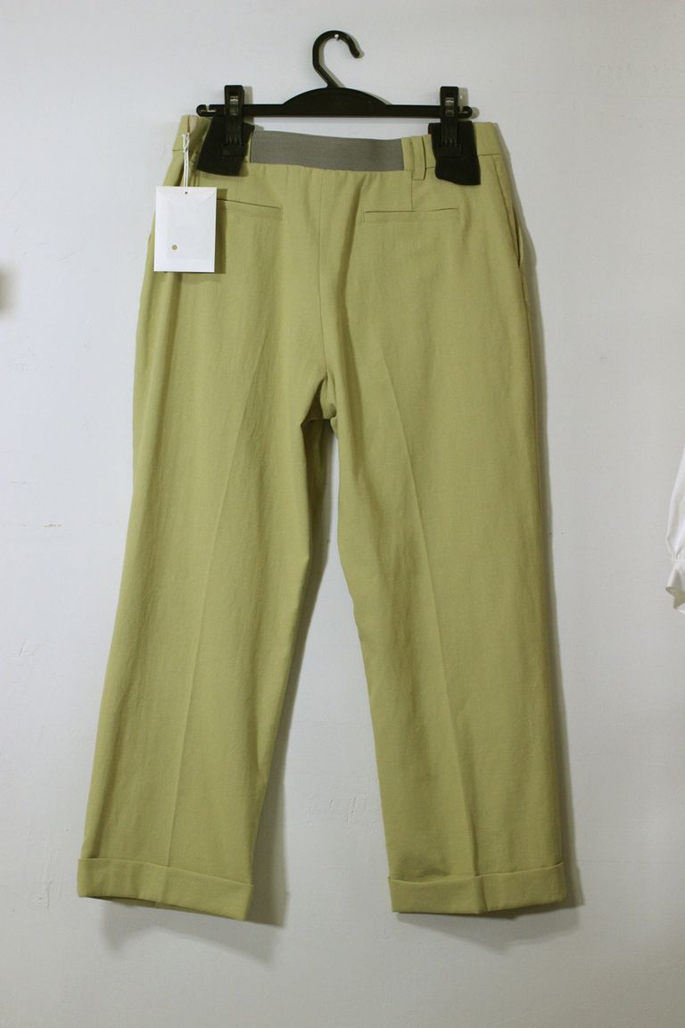 裾のダブルはまつりを解くだけで簡単にシングルになり、ヘムも十分あり丈だしもできます。腰には楽々クロスラバー仕様!ご試着の際のフィット率もアップします。素材は春夏にかけて着用しやすいボディシェルドライ系を使用。涼しく楽々、旅行にもピッタリなパンツです。