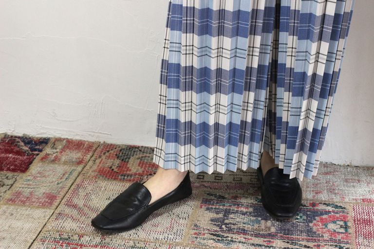 シルエットがきれいなプリーツパンです。