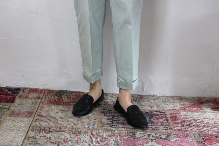 ダブルの裾は、まつり縫いを解けばそのままシングルになるよう