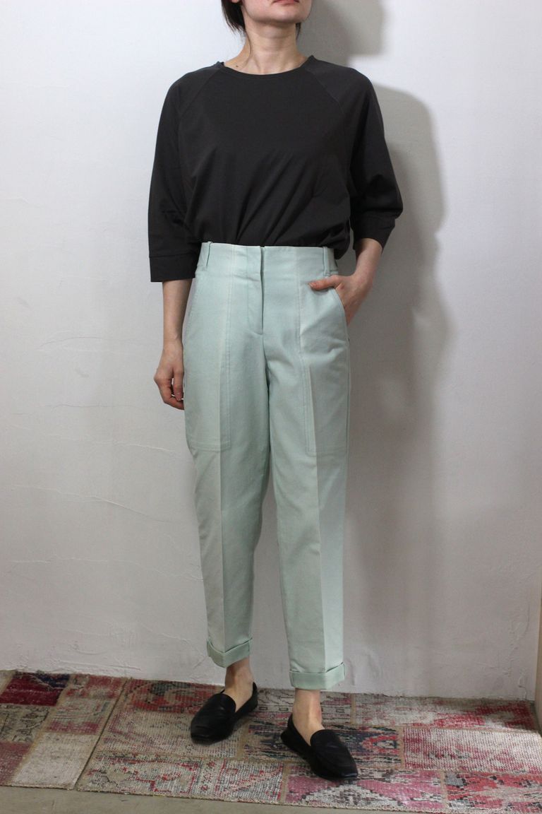 ワンウォッシュカラーデニムベーカーパンツ グリーン