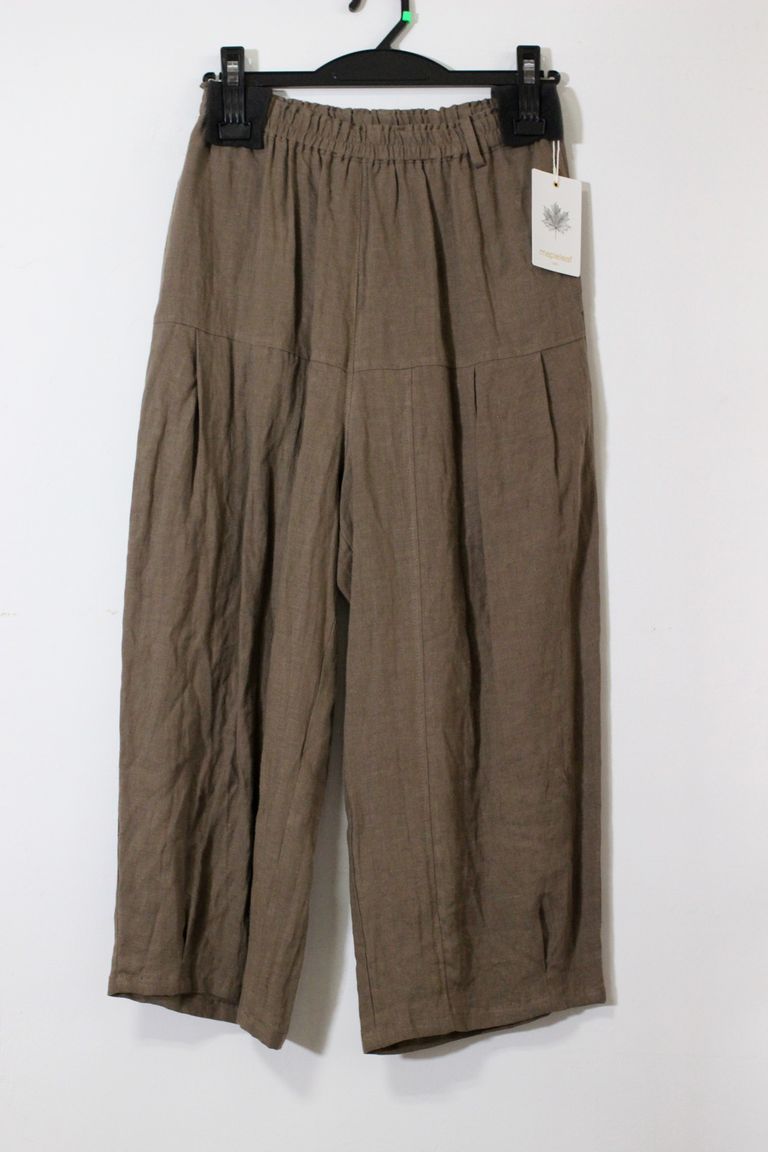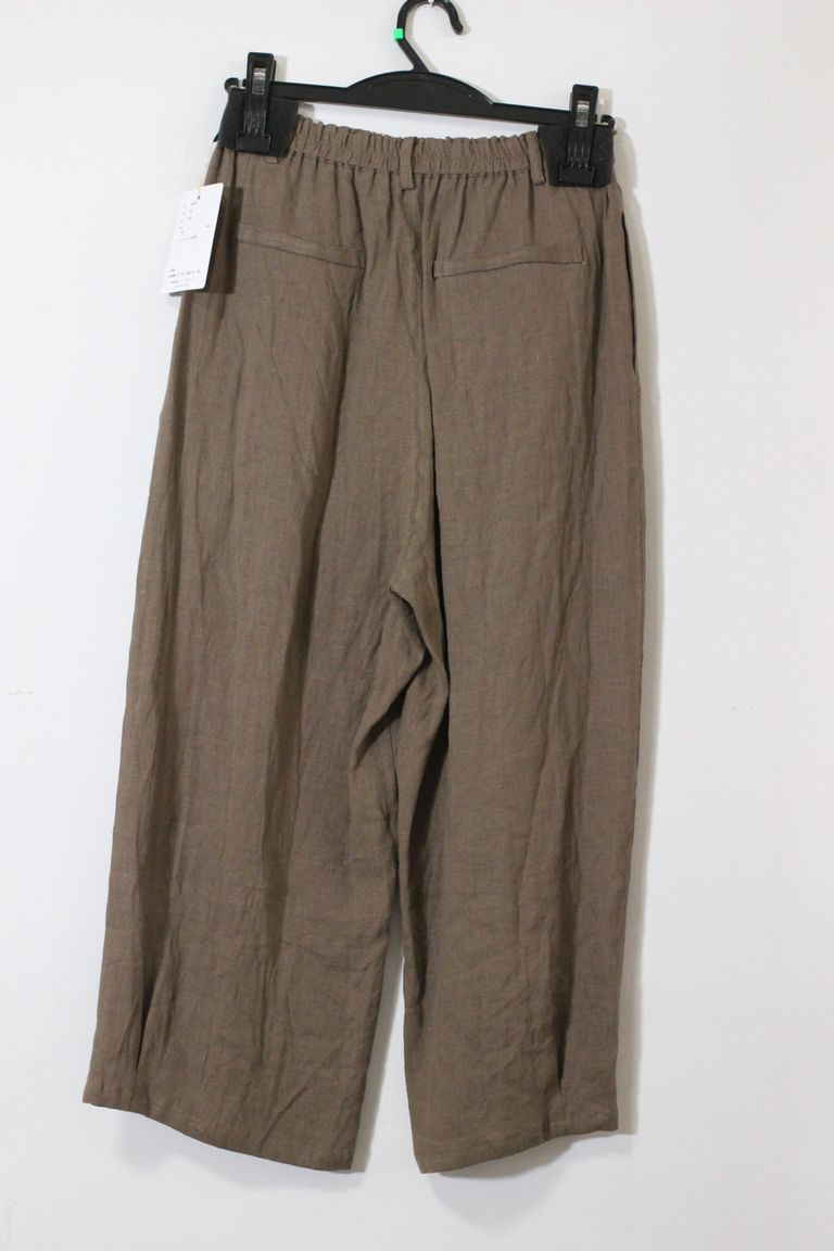 クロップドリネンパンツ ブラウン